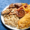 (3 stinchi, 3 cotolette, 3 meraner, 3 Frankfurter, patate fritte, crauti, insalata di stagione)