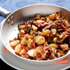 (Bocconcini di manzo, patate saltate, cipolla, speck e prezzemolo il tutto servito in padella)
